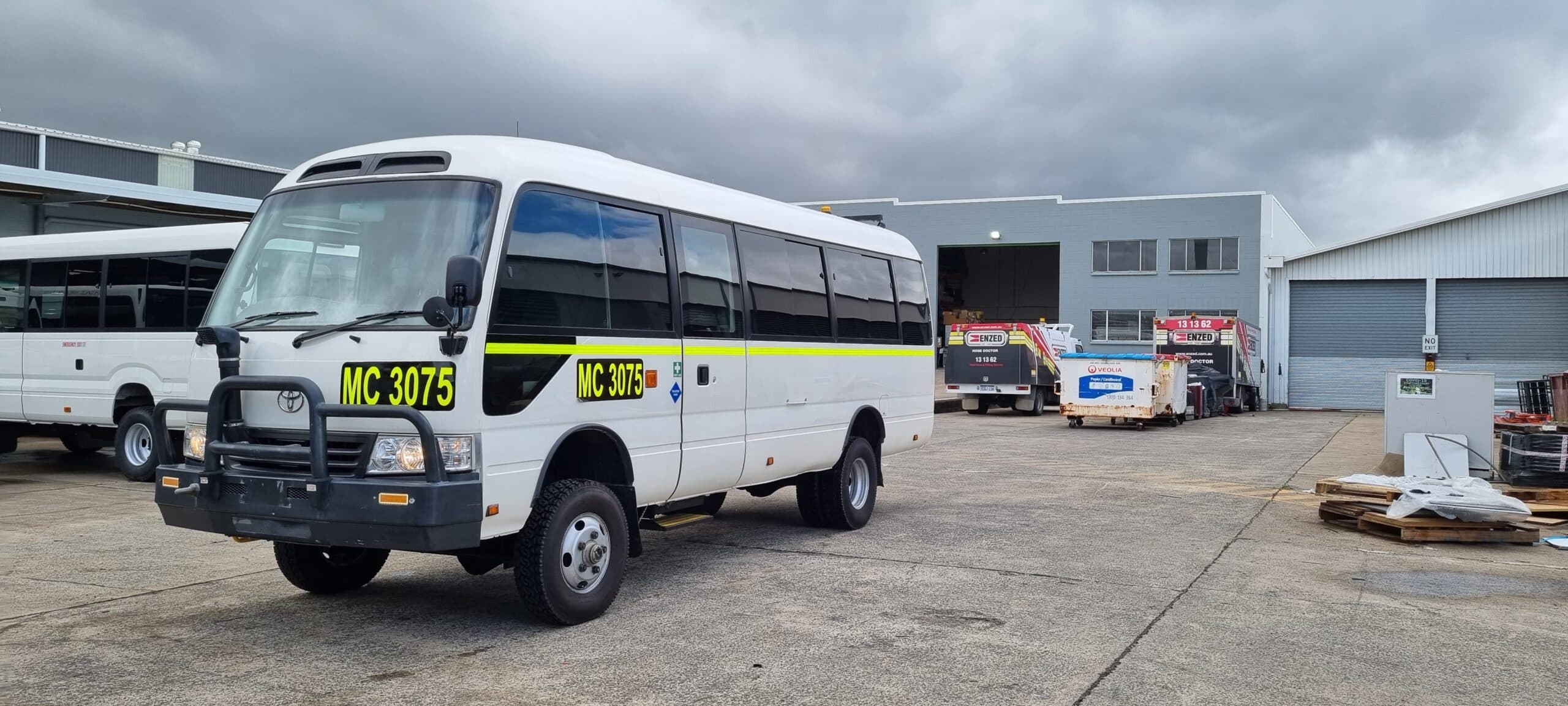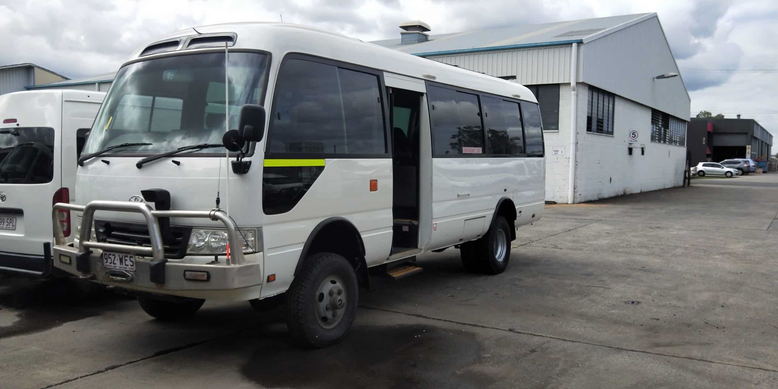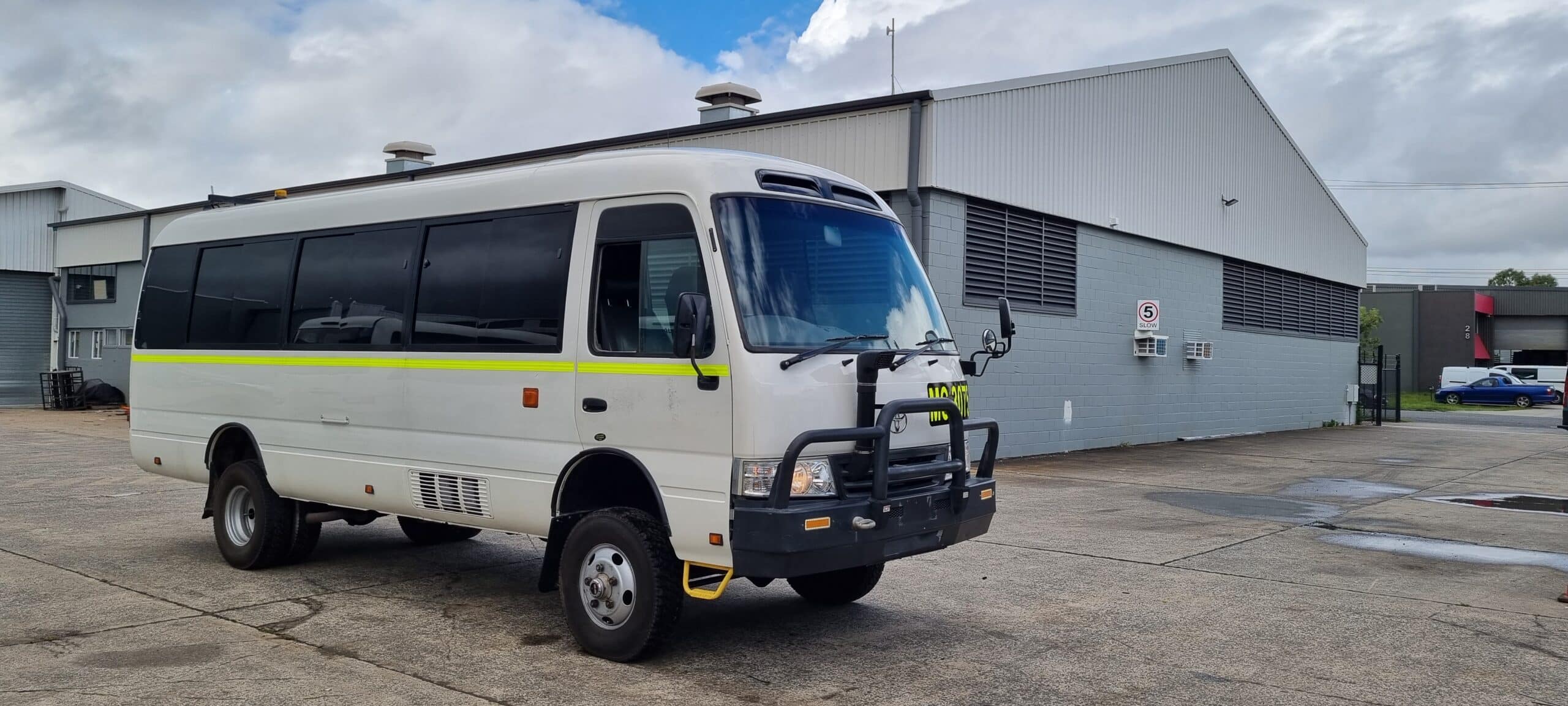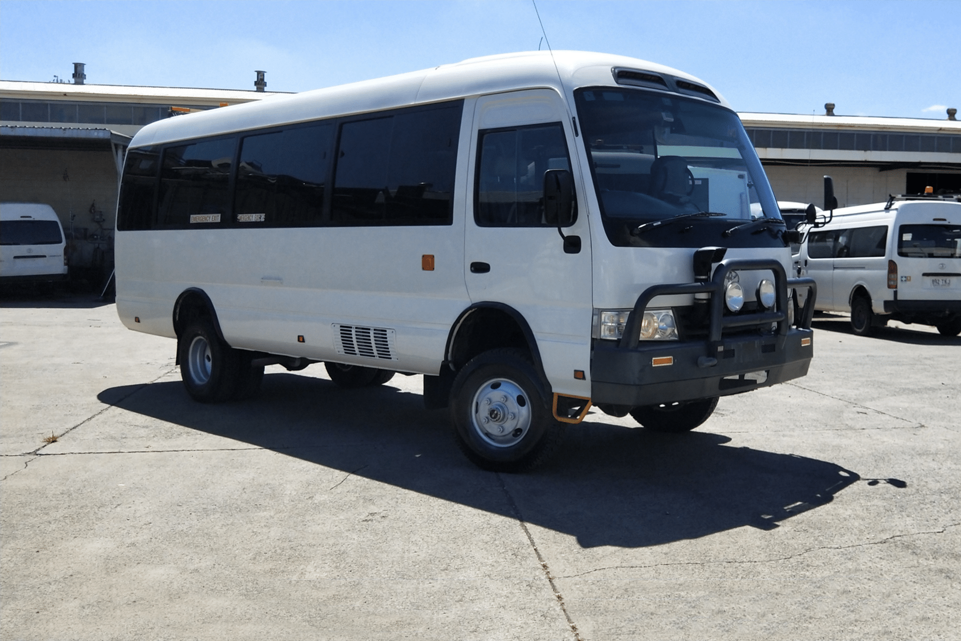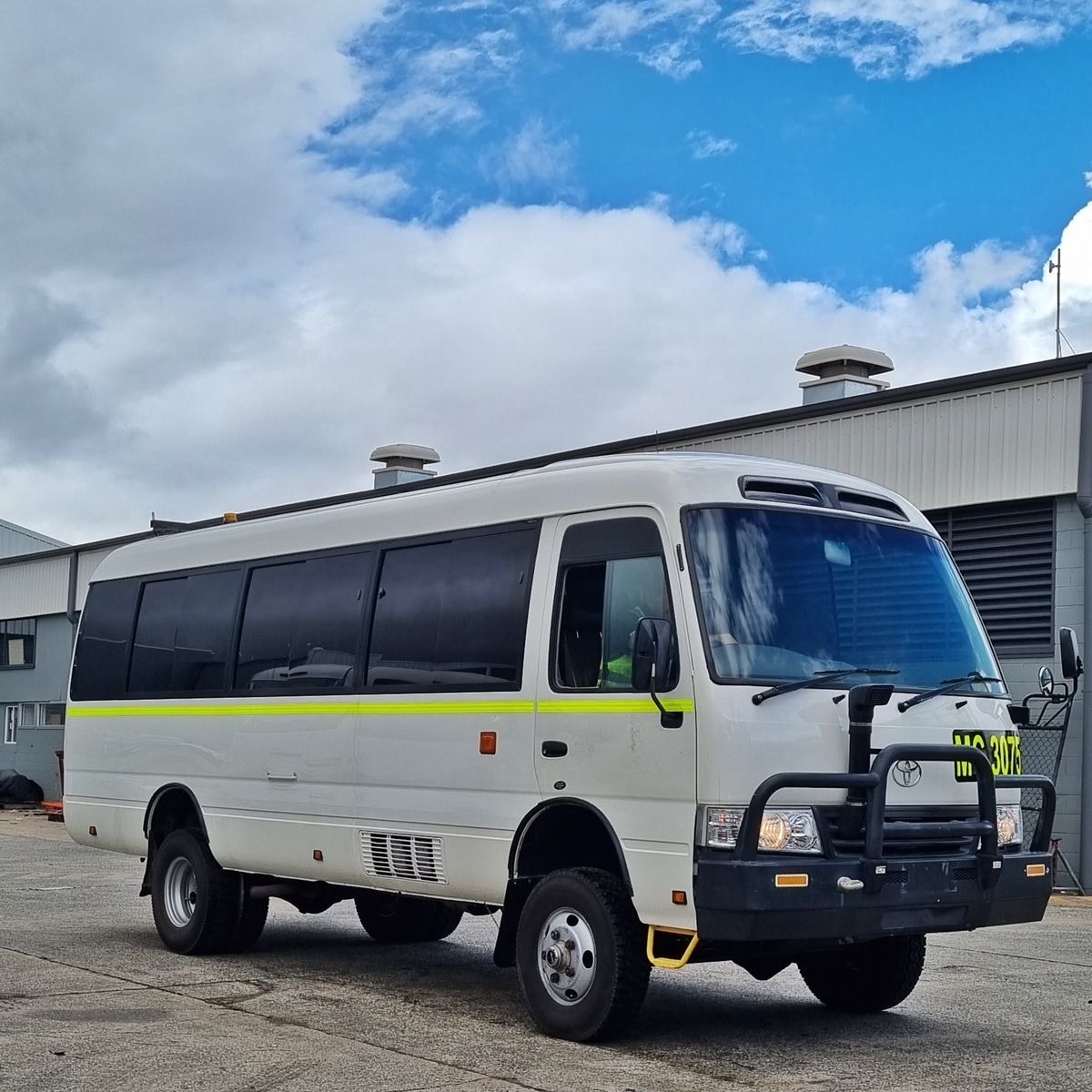 The Bus 4×4 Conversion of the Toyota Coaster. The only choice to tackle rugged terrains without compromising on passenger numbers, safety or reliability.